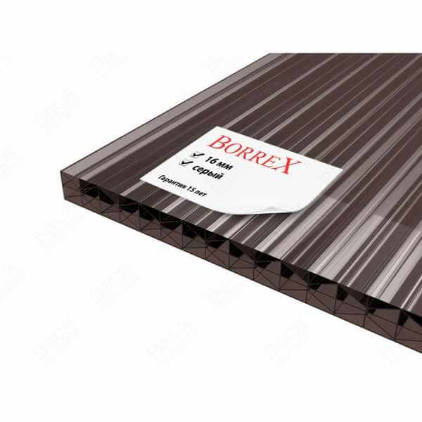 Сотовый поликарбонат 16 мм BORREX серый 2100х12000 мм - это прочный и легкий материал, который отлично подходит для использования в различных строительных и дизайнерских проектах. Поликарбонат имеет ячеистую структуру, что делает его устойчивым к ударным нагрузкам и обеспечивает хорошую теплоизоляцию. Благодаря своей прочности и долговечности, он может использоваться как для крыш, так и для остекления.