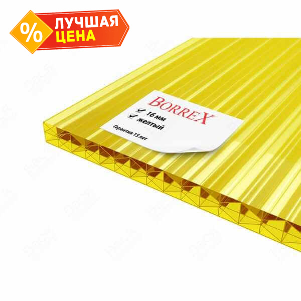 Сотовый поликарбонат 16 мм BORREX желтый 2100х6000 мм