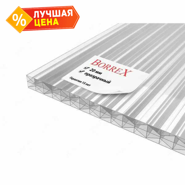 Сотовый поликарбонат 20 мм BORREX прозрачный 2100х6000 мм