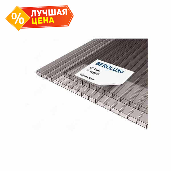 Сотовый поликарбонат 4 мм BEROLUX серый 2100х6000 мм