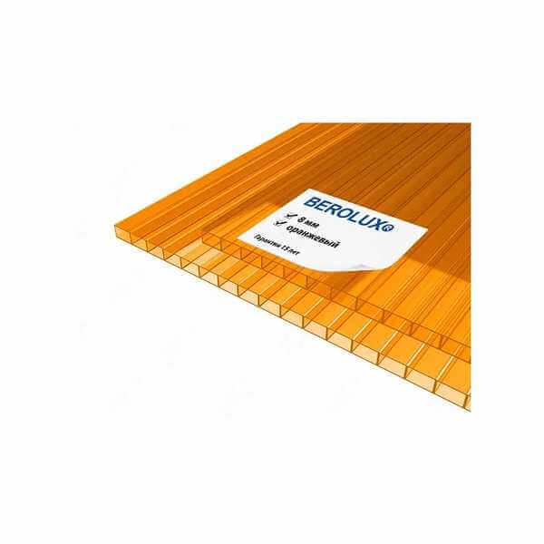 Сотовый поликарбонат 8 мм BEROLUX оранжевый 2100х6000 мм