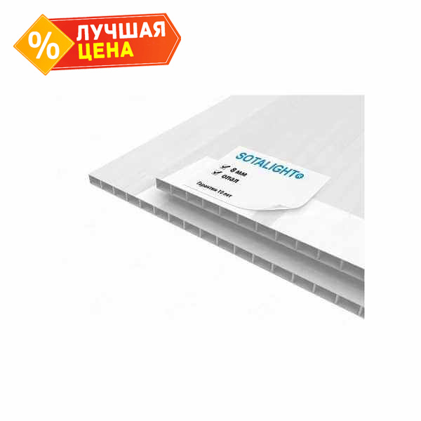 Сотовый поликарбонат 8 мм SOTALIGHT опал 2100х12000 мм - это прочный и легкий материал, который отлично подходит для использования в различных строительных и дизайнерских проектах. Поликарбонат обладает высокой прочностью и устойчивостью к воздействию внешних факторов, что делает его идеальным выбором для создания крыш, навесов, ограждений и других конструкций.