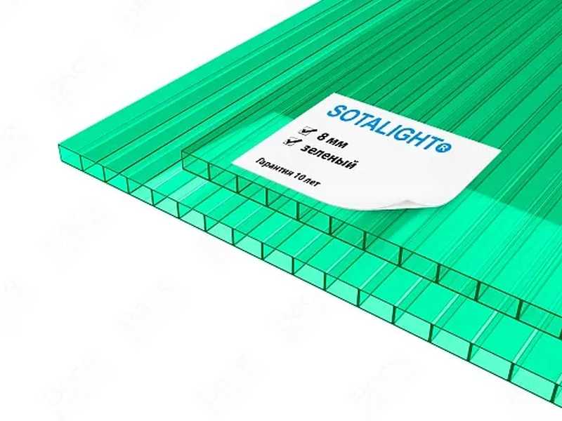 Сотовый поликарбонат 8 мм SOTALIGHT зелёный 2100х6000 мм
