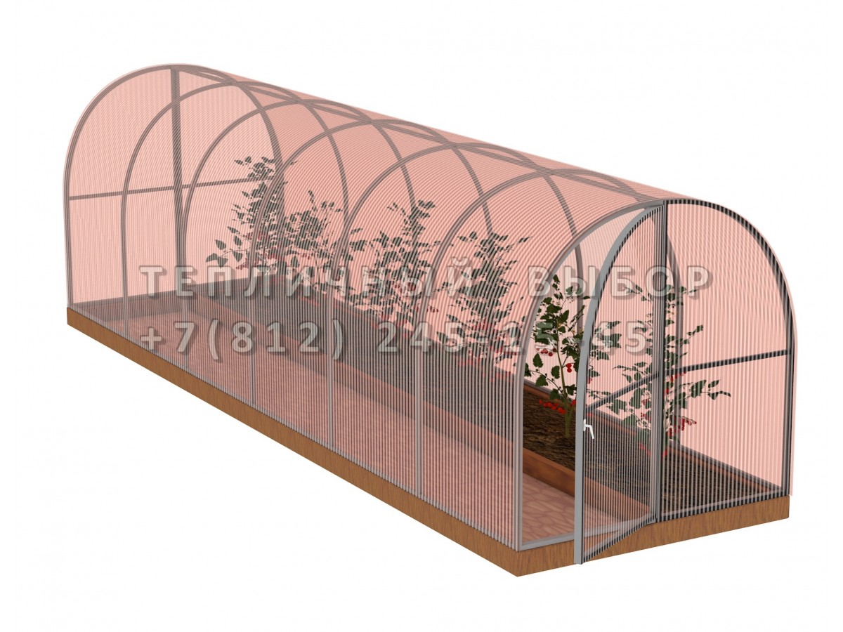 Теплица из поликарбоната-фито Арочная 1,6х8 h=1.68 м профиль 20х20 мм