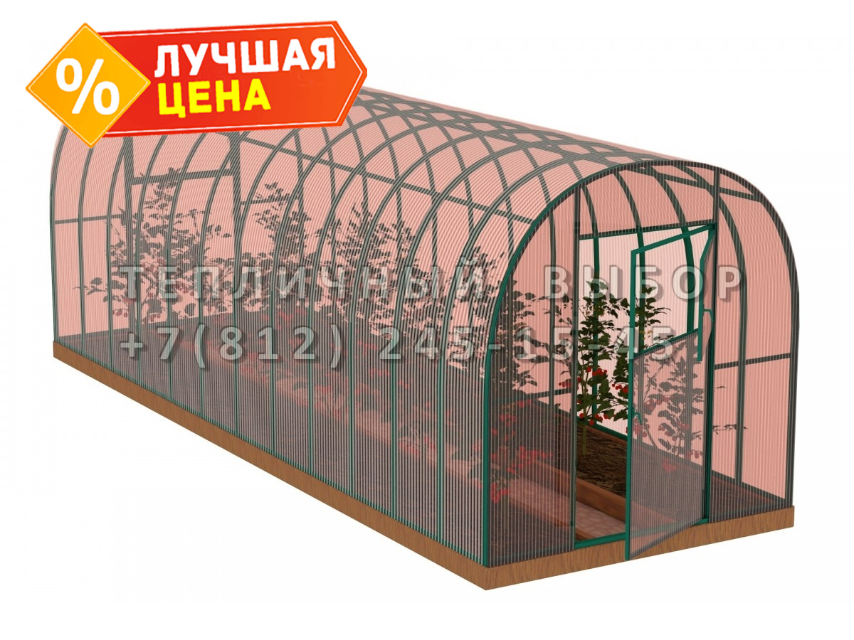 Теплица из поликарбоната-фито Усиленная Арочная 2,1х12 h=2 м профиль 25х25 мм Зеленый