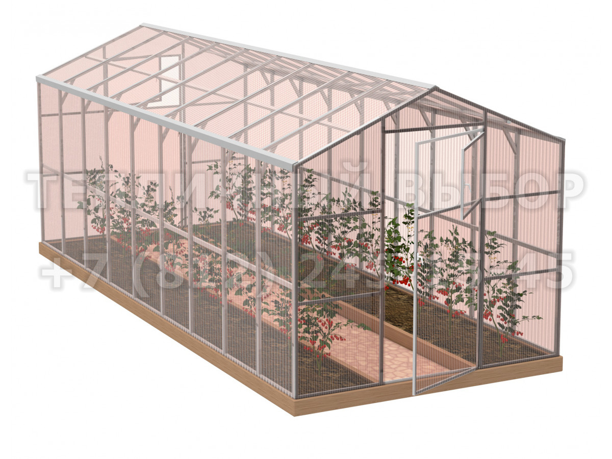 Теплица из поликарбоната-фито Усиленная Домиком 2,3х8 h=2.1 м профиль 25х25 мм