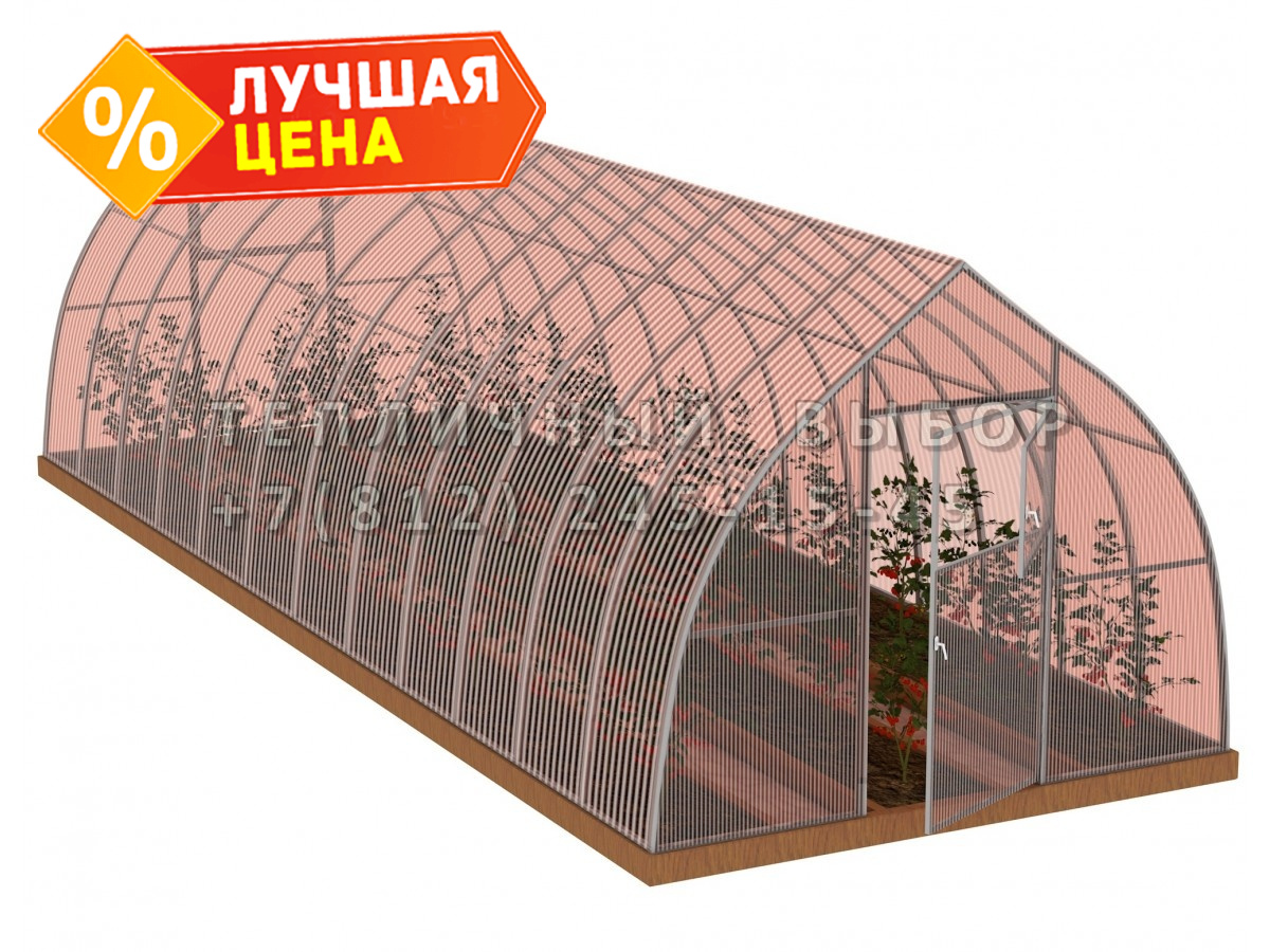 Теплица из поликарбоната-фито Усиленная Капелька 3х12 h=2.3 м профиль 25х25 мм