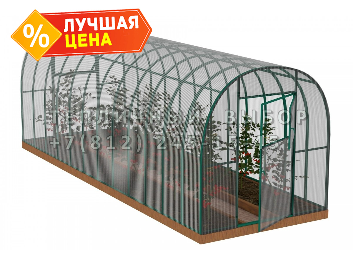 Теплица из поликарбоната Усиленная Арочная 2,1х6 h=2 м профиль 25х25 мм Зеленый