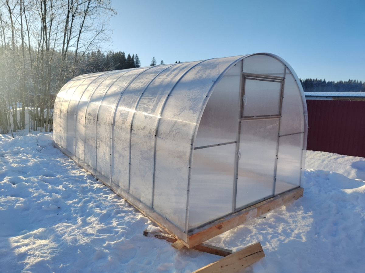 • поликарбонат толщиной 4 мм (в транспортном состоянии свёрнутые в рулон листы имеют диаметр до 80 см и длину 2,1 м)