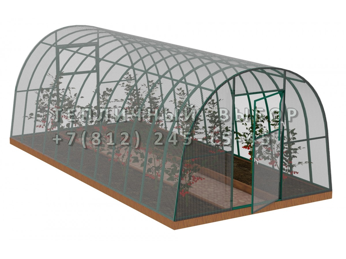 Теплица из поликарбоната Усиленная Арочная 2,5х8 h=2 м профиль 30х30 мм Зеленый