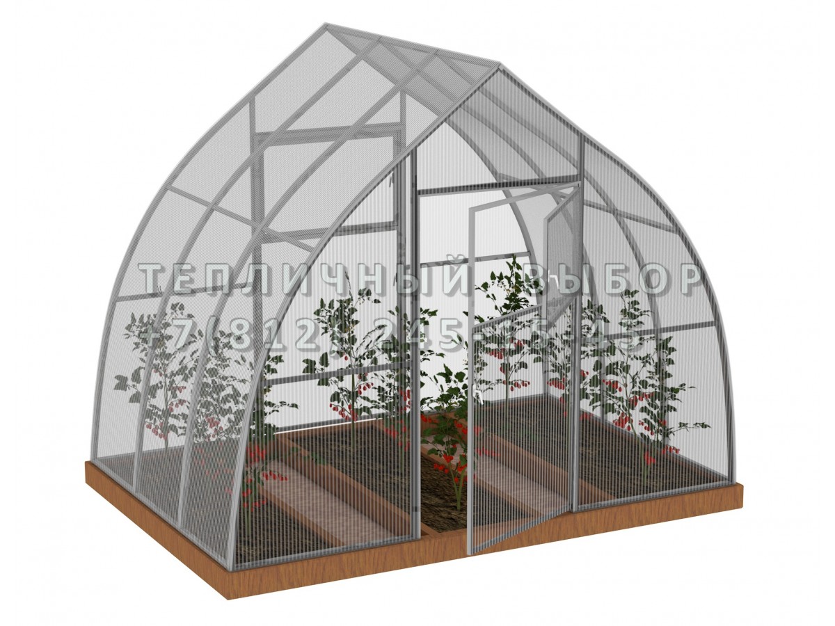 Теплица из поликарбоната Усиленная Капелька 2,5х2 h=2.3 м профиль 25х25 мм