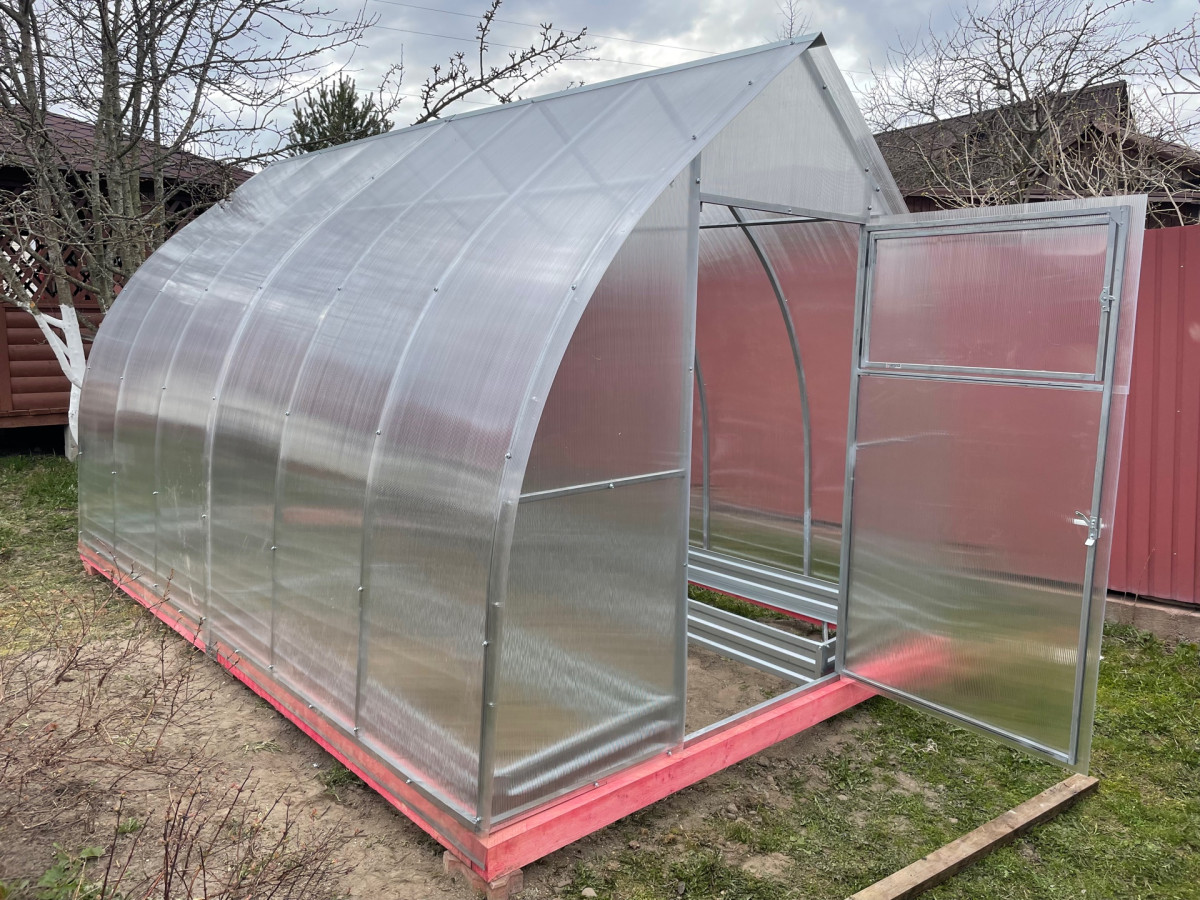 В разобранном виде теплица состоит из отдельных сварных рам в виде дуги.