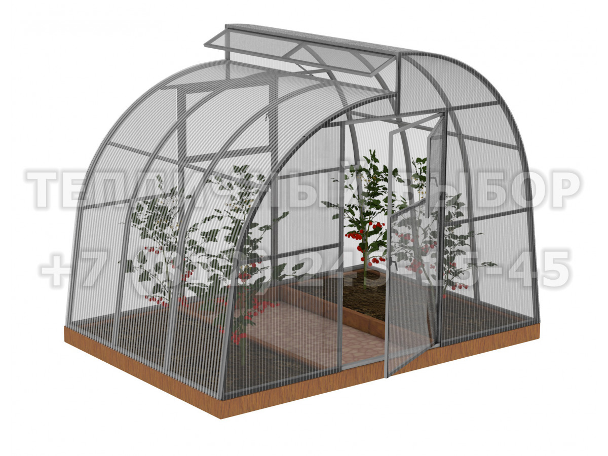 • длина фрамуги соответствует длине теплицы, высота 22 см, открывается изнутри и фиксируется в открытом состоянии с помощью ограничителя;