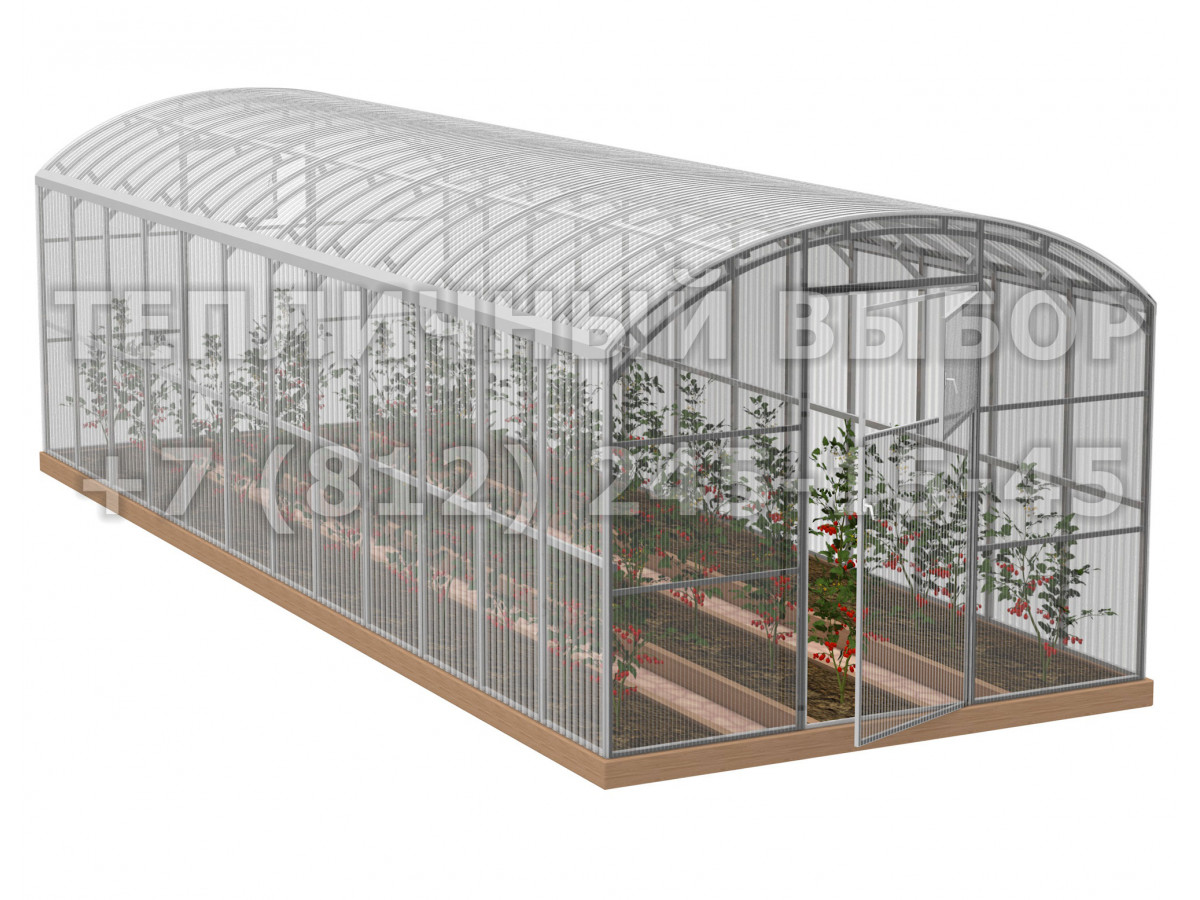 Теплица из поликарбоната Усиленная Прямостенная 3х12 h=2.1 м профиль 20х40 мм