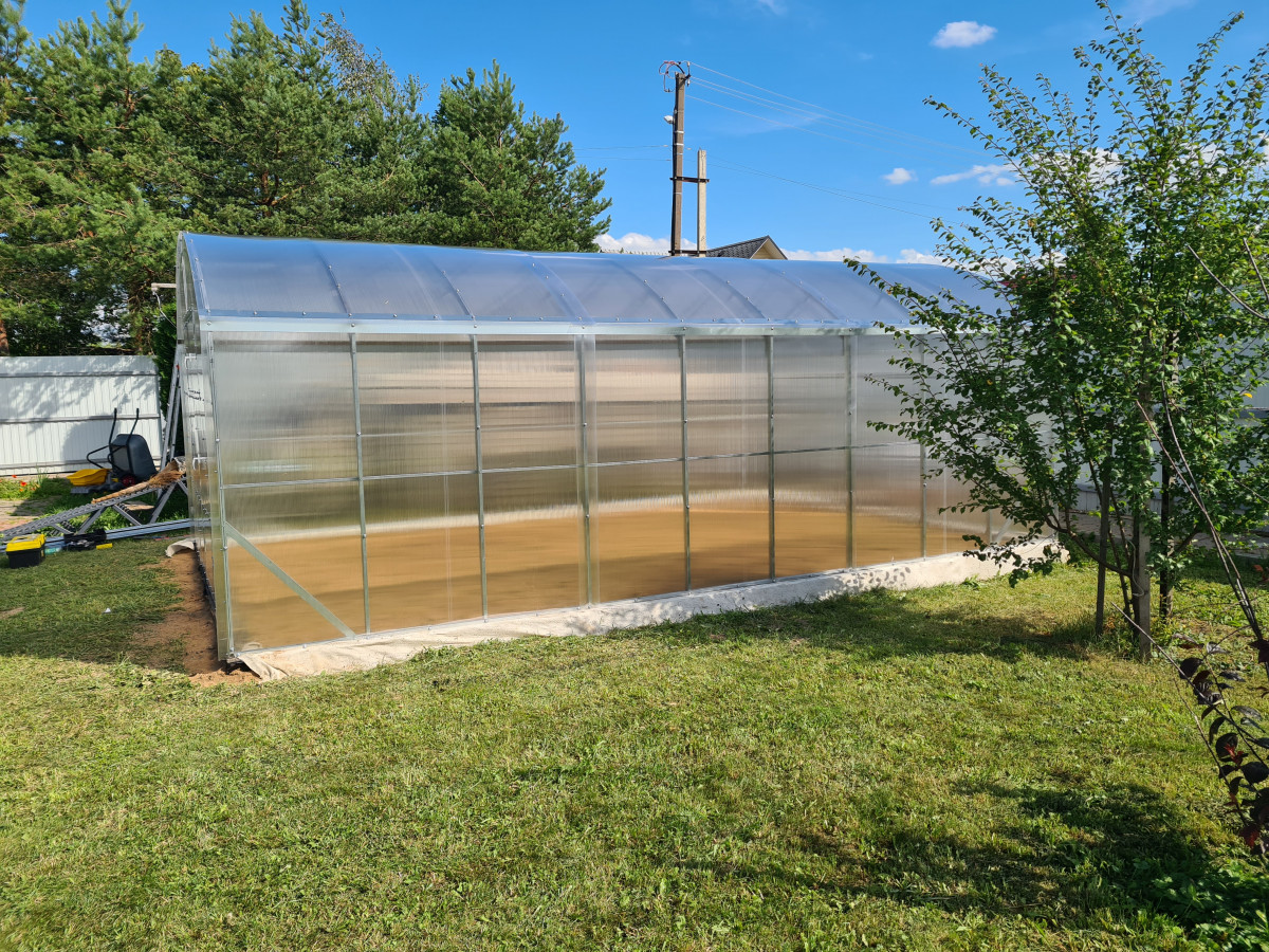 • широкая 4 м, ширина теплицы позволяет организовать 3 широкие полноценные грядки с комфортными проходами между ними;