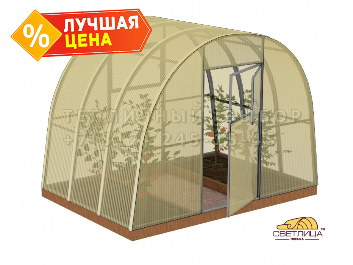 • укрывной материал - легендарная пленка «Светлица» толщиной 150 мкм, имеет уникальный состав, который делает ее прочной, эластичной и долговечной (не менее 7 лет без снятия на зиму)